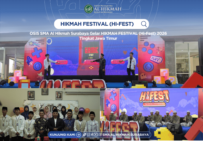 Surabaya, Ahad 25 Januari 2026 — OSIS SMA Al Hikmah Surabaya sukses menyelenggarakan kegiatan HIKMAH FESTIVAL (Hi-Fest) 2026, sebuah ajang kompetisi Islami yang diikuti oleh pelajar tingkat SMP dan SMA se-Jawa Timur. Kegiatan ini menjadi wadah ekspresi, prestasi, dan penguatan karakter generasi muda dalam bingkai nilai-nilai keislaman.