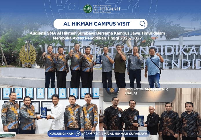 Dalam upaya memperluas akses pendidikan tinggi bagi peserta didik serta memperkuat jejaring kelembagaan, SMA Al Hikmah Surabaya melaksanakan kegiatan Al Hikmah Campus Visit ke sejumlah kampus Jawa Timur pada 13–14 Januari 2026. Kegiatan ini diikuti oleh rombongan Al Hikmah yang terdiri dari 4 orang.