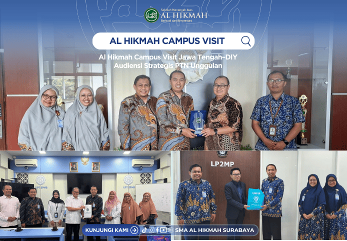 SMA Al Hikmah Surabaya melaksanakan kegiatan Al Hikmah Campus Visit sebagai bagian dari upaya strategis memperkuat jejaring kelembagaan dengan perguruan tinggi negeri di Indonesia. Kegiatan ini mengusung tagline “Audiensi Menjalin Sinergi, Membuka Akses Pendidikan Tinggi” dan dilaksanakan secara bertahap di berbagai wilayah.