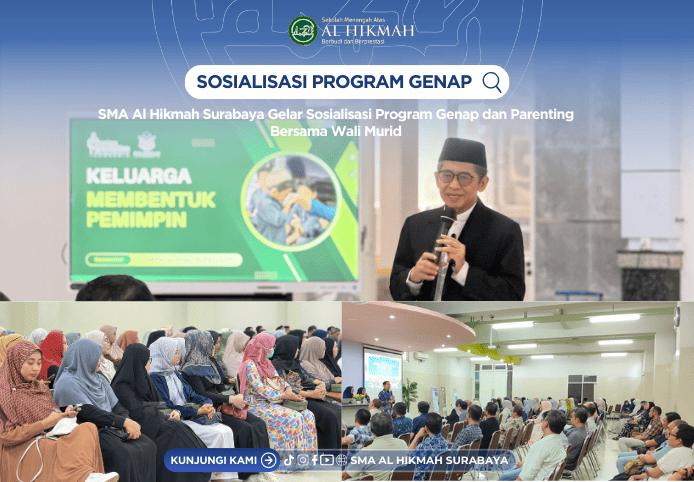 SMA Al Hikmah Surabaya menyelenggarakan kegiatan Sosialisasi Program Sekolah Genap dan Parenting Tahun Ajaran 2025/2026 yang diikuti oleh seluruh wali murid kelas X, XI, dan XII, pada Sabtu, 24 Januari 2026, bertempat di lingkungan SMA Al Hikmah Surabaya. Kegiatan ini berlangsung sejak pukul 07.30 hingga 11.30 WIB dan menjadi wadah penguatan sinergi antara sekolah dan orang tua dalam mendampingi proses pendidikan siswa.